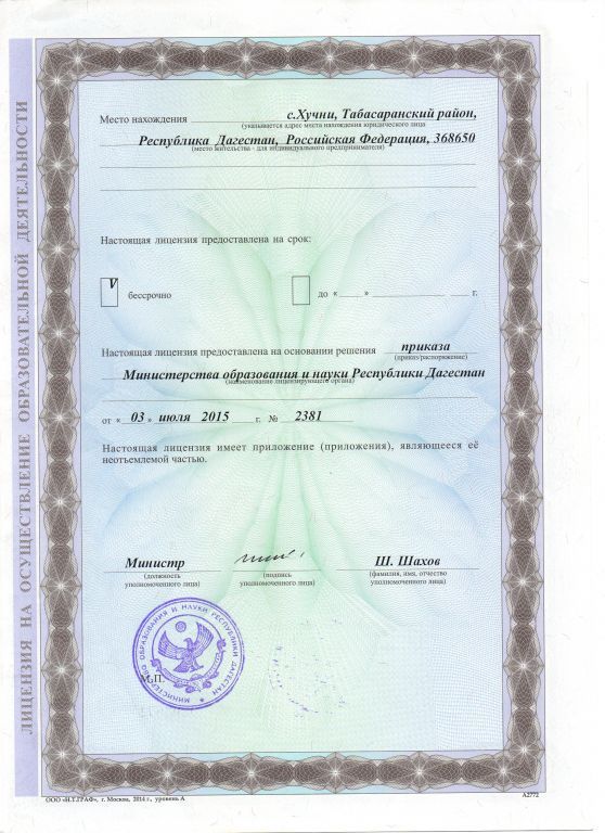 Адрес местонахождения образовательной организации* 368650, Дагестан Респ, Табасаранский р-н, Хучни с, А.Джафарова ул, дом № 41, корпус А